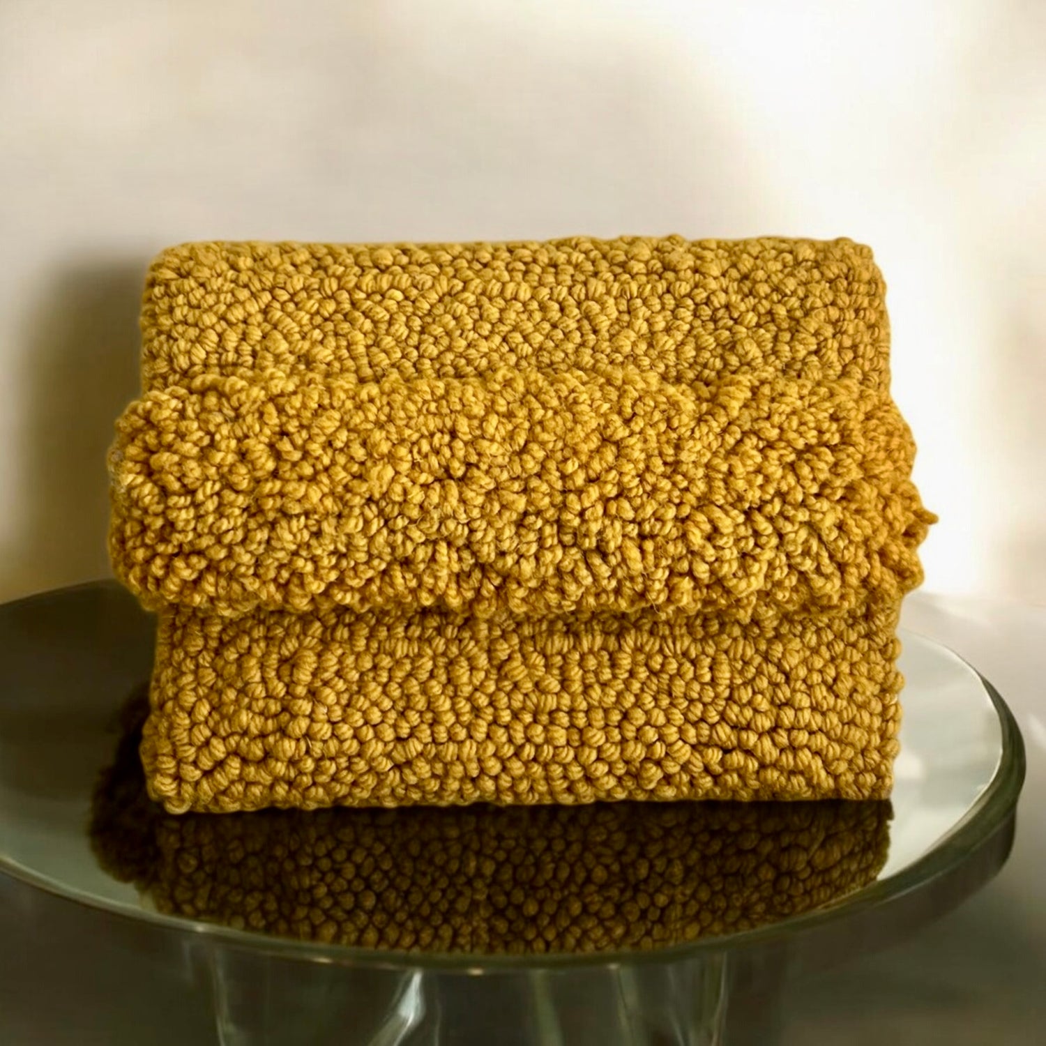 Our hand made Clutch Collection showcases unique punch needle purses. Each piece is stitched by hand, lined with care, and finished with a detachable macramé strap.