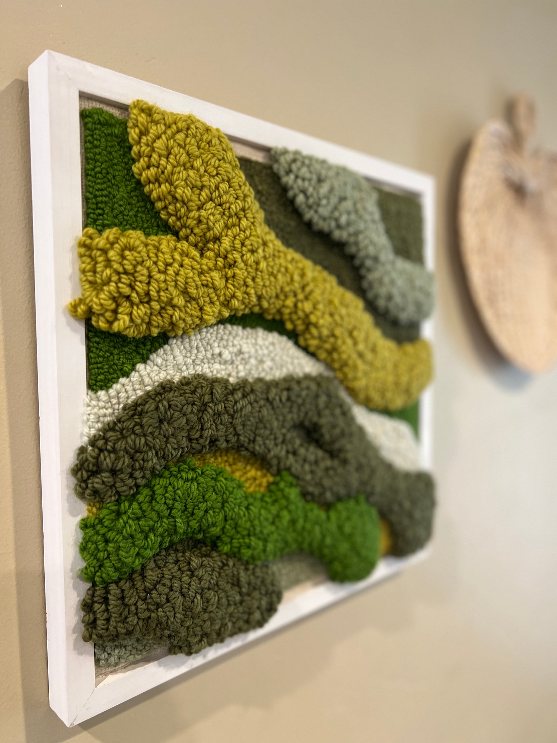 This piece of art is a tangle of wild foliage from a bird's eye view. The textures are bold and organic, with greens that feel alive and layered.